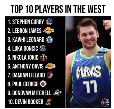 洛杉矶4将入选詹姆斯后 美媒位列西部前十